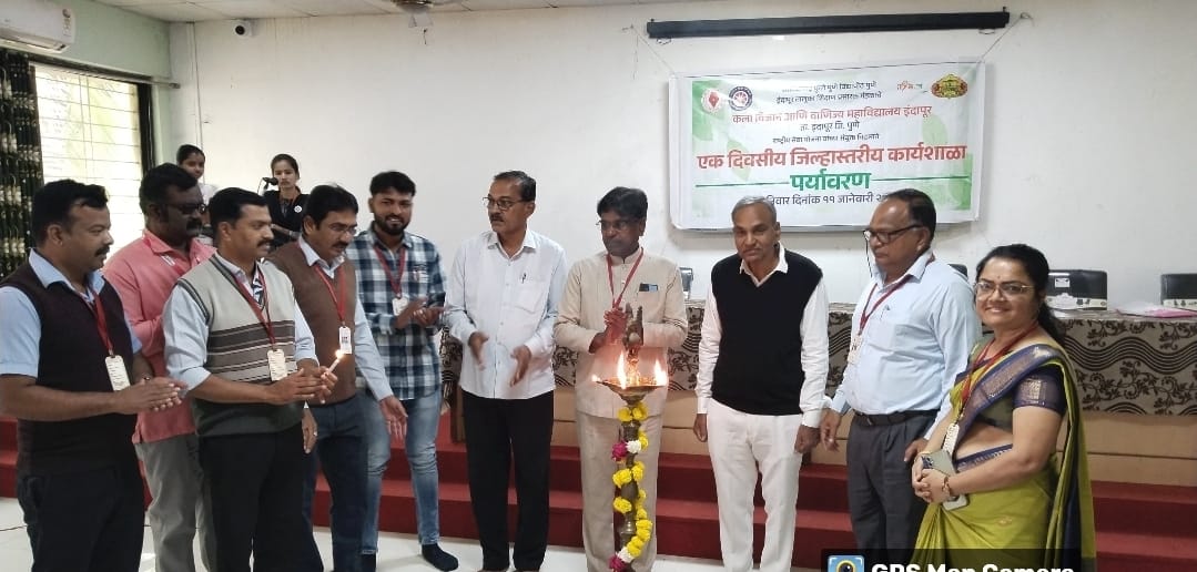 इंदापूर : सावित्रीबाई फुले पुणे विद्यापीठ आणि इंदापूर तालुका शिक्षण प्रसारक मंडळाचे कला, विज्ञान आणि वाणिज्य महाविद्यालय इंदापूर यांच्या संयुक्त विद्यमाने मूल्यशिक्षण उपक्रमांतर्गत एकदिवशीय पर्यावरण या विषयावरती जिल्हास्तरीय कार्यशाळेचे आयोजन राष्ट्रीय सहकारी साखर कारखान्याचे अध्यक्ष व माजी मंत्री हर्षवर्धन पाटील यांच्या मार्गदर्शनाने आयोजित करण्यात आली होती यावेळी विद्यार्थ्यांना मार्गदर्शन करताना भिगवण महाविद्यालयाचे भूगोल विभाग प्रमुख डॉ. भास्कर गटकुळ यांनी पर्यावरणाची जाणीव जागृती स्वयंसेवकांनी समाजापर्यंत पोहोचविण्याचे आवाहन केले.