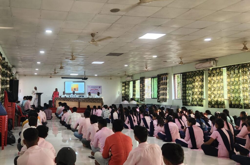 योगशिक्षक जितेंद्र माने यांनी पूर्वीचे ऋषीमुनीं यांची ध्यानमग्न जीवनशैली समजावून सांगितली आणि विद्यार्थी जीवनात सकस आहार, व्यायाम आणि ध्यान याचे महत्त्व पटवून दिले.